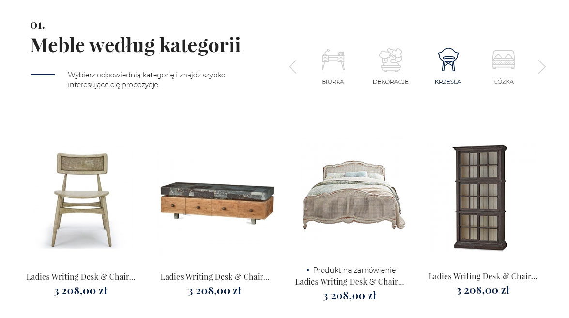 W tym projekcie warto zwrócić uwagę na slider produktów i kategorii pod sliderem głównym. Już tutaj przekierowujemy klientów do polecanych i wybranych przez nas produktów. Zdecydowałam się na to rozwiązanie, ponieważ – jak wynikało ze statystyk – klienci mieli w poprzedniej wersji sklepu zbyt duży, chaotyczny wybór (wszystkie produkty wyświetlały się według daty dodania, ok. 9 na stronie głównej + długo szukali kategorii w menu głównym).