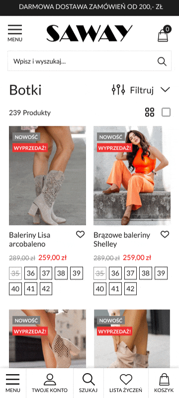 Moim zadaniem było zaprojektowanie UX i UI dla sklepu internetowego hurtowni z modnym kobiecym obuwiem. Klientki lubią design sfocusowany na dużych, ambientowych zdjęciach i minimalistycznym UI. Minimalistyczne menu, przyklejone do dołu strony sprawia, że wszystkie narzędzia klientki mają zawsze pod ręką.